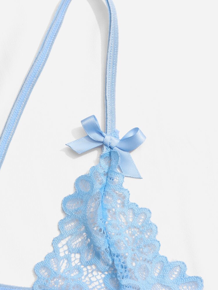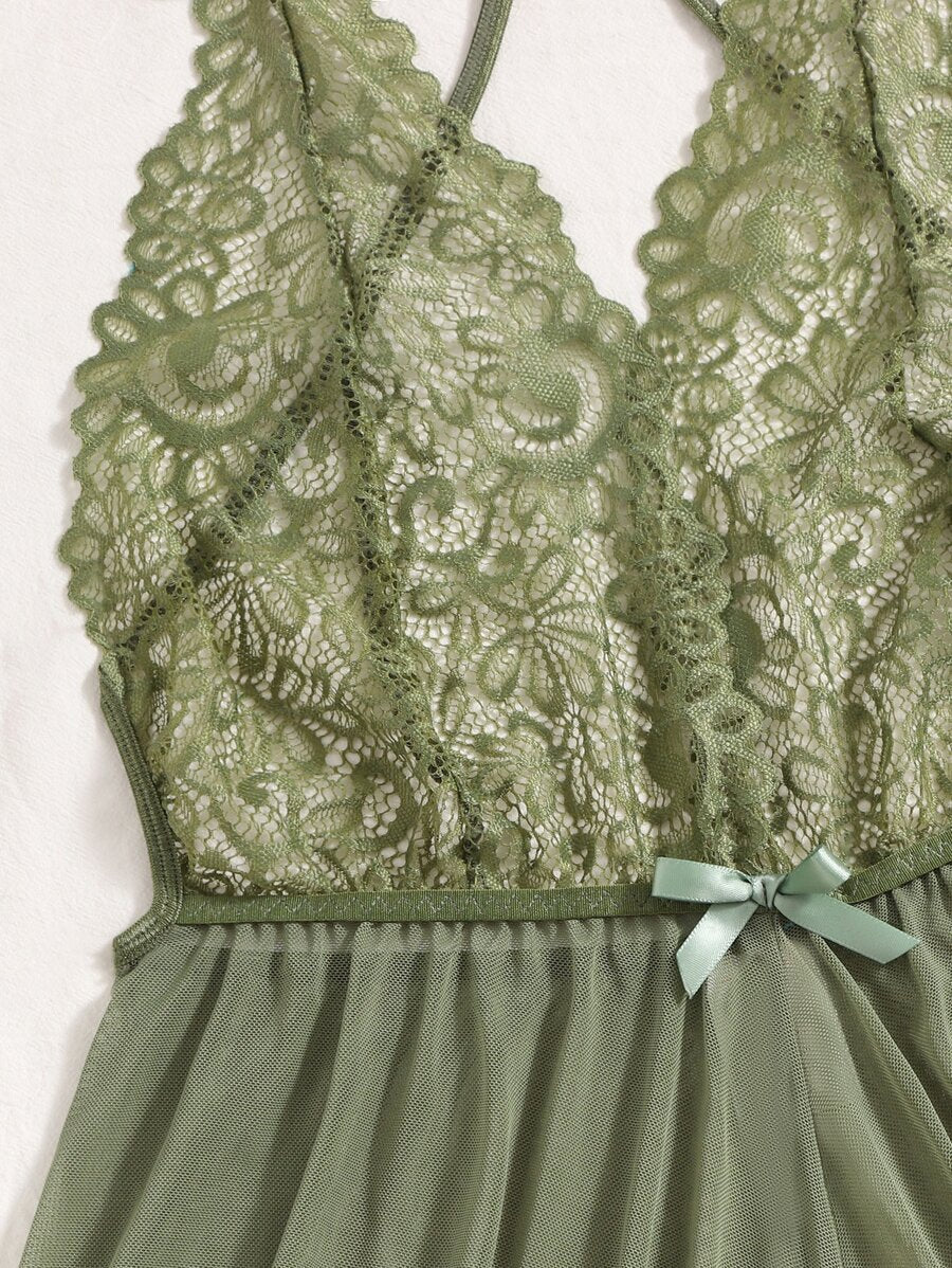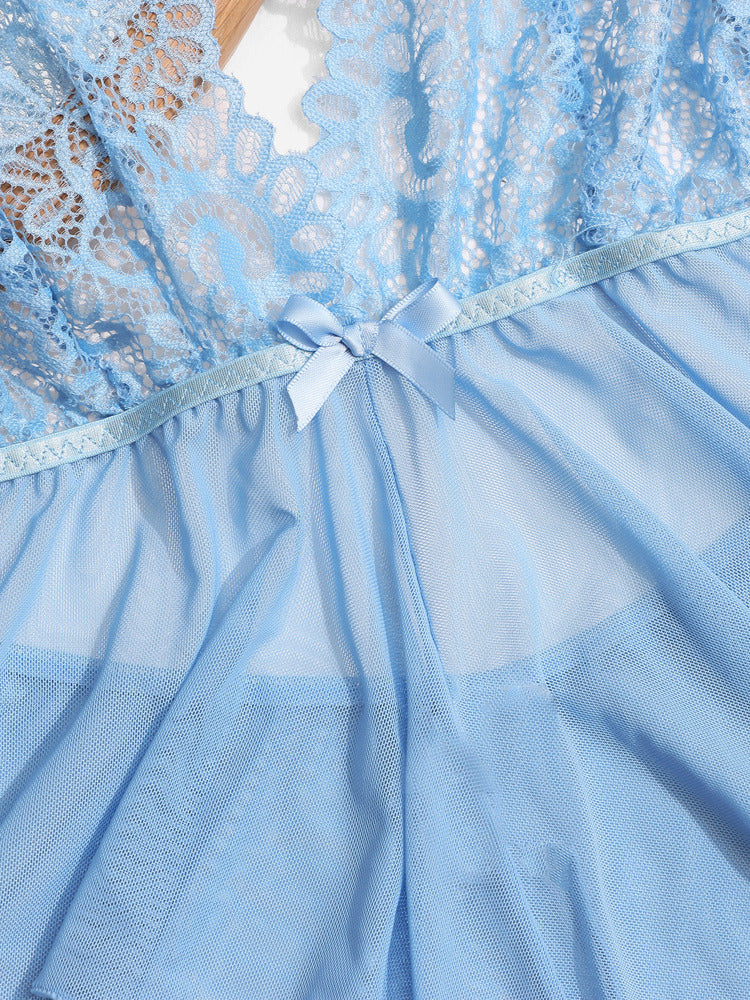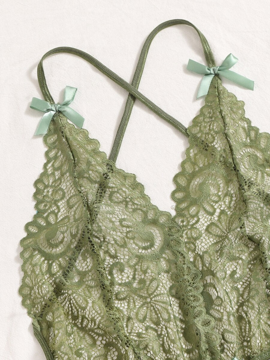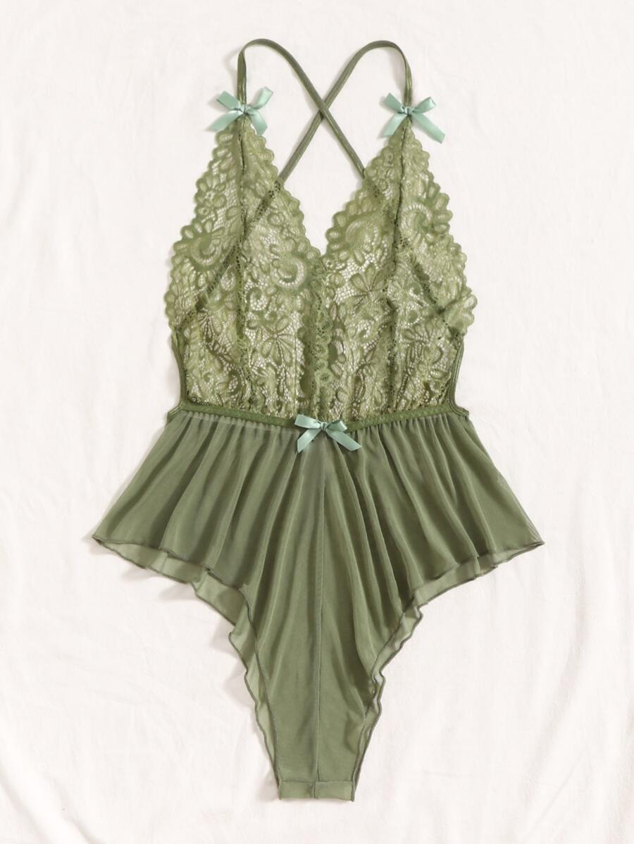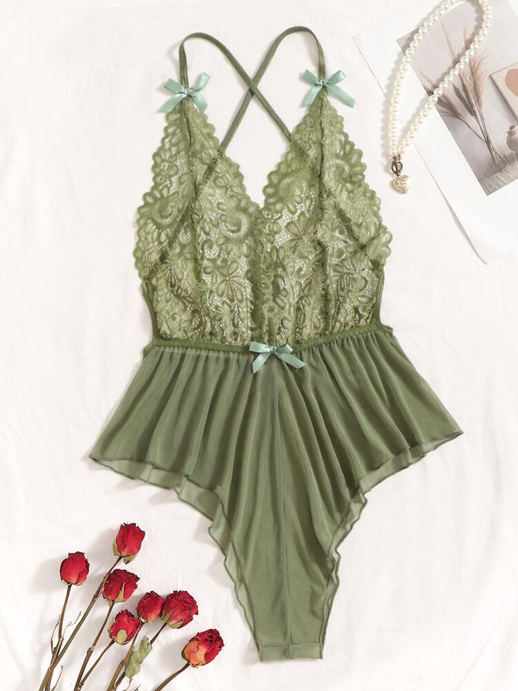 Classic Sexy Contrast Lace Sheer Mesh Backless Cross Teddy Bodysuit Lingerie