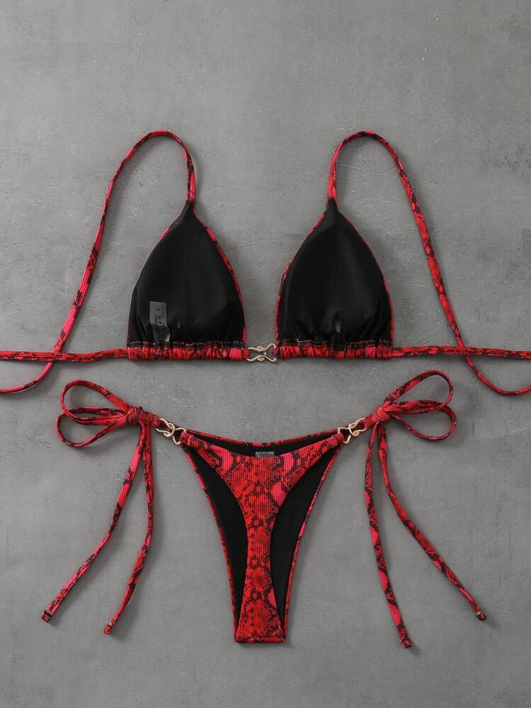 Swim Vcay 2pcs/Set Women Beach Random Floral Print Halter Triangle Bikini Top And Side Tie Bottom Set, Summer